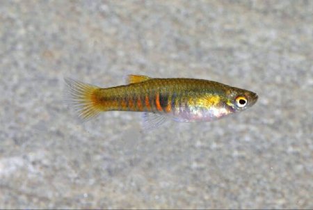 Samičky rodia naraz 1 až 2 živé mláďatá, ktoré okamžite po narodení prijímajú drobnú potravu. Najvhodnejšie je živé drobné krmivo (čerstvo vyliahnutá žiabronôžka). Rodičia svojich potomkov nežerú. Dospievajú pomerne rýchlo, v priebehu 6-8 týždňov.